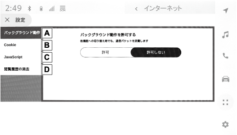 1. 他の機能を使用しているときに、Web ブラウザのバックグラウンド動作を許可する/しないを設定します。
