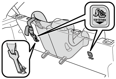 テザーベルトをピンと張り、フックがしっかり固定されていることを確認します。(→チャイルドシートを取り付けるとき