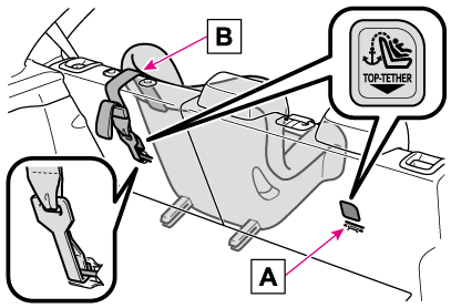 ヘッドレストとチャイルドシートまたはテザーベルトが干渉してチャイルドシートが正しく取り付けられない場合は、ヘッドレストを取りはずしてください。(→ヘッドレスト