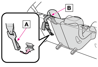4. チャイルドシートにシートベルトの固定装置が備わっていない場合は、ロッキングクリップ(別売)を使用して固定する