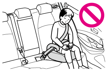 チャイルドシートの隣の席を使用するときは、肩部ベルトが確実に肩を通り、腰部ベルトが腰骨のできるだけ低い位置に密着することを確認してください。チャイルドシートの隣の席に座ったときに、チャイルドシートの種類によっては、乗員の体またはシートベルトがチャイルドシートと干渉するためシートベルトが正しく着用できず、十分な効果を発揮できない場合があります。その場合は、他の席を使用してください。
