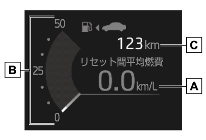 平均燃費をリセットするには、メーター操作スイッチのを長押しします。