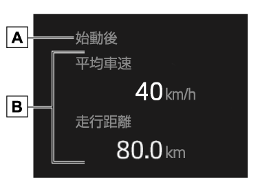 • 平均車速:ハイブリッドシステム始動後の平均車速を表示