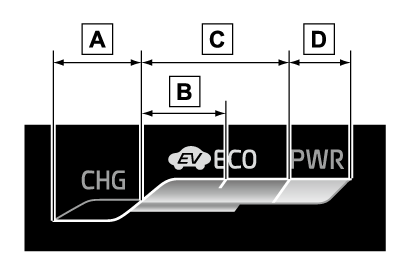 発進・安定走行などの各走行状況に適したアクセル操作範囲の目安が、エコエリア内に青色のバーで表示されます。