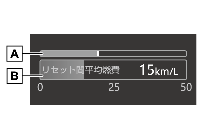 始動後・リセット後・給油後のうち、いずれかの平均燃費を表示します。