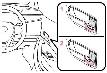 運転席ドアは、ロックレバーが施錠側になっていても、車内のドアレバーを引くと開きます。