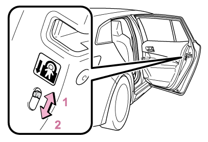 • お子さまをリヤ席に乗せるときは、チャイルドプロテクターを使用して車内からドアが開かないようにする