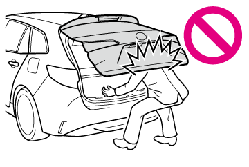 完全に閉まっていないと走行中に突然開き、車外のものにあたったり、荷物が投げ出されたりして思わぬ事故につながるおそれがあります。