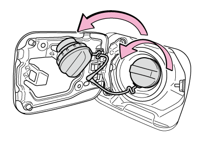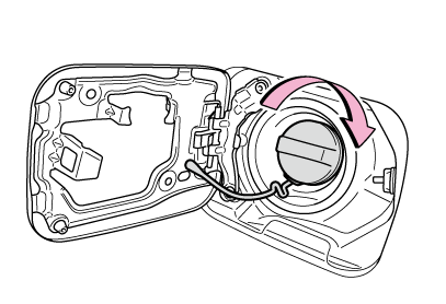 すぐに開けると、気温が高いときなどに、給油口から燃料が噴き出るおそれがあります。