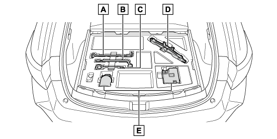タイヤパンク応急修理キット装着車には、スペアタイヤ、ジャッキ、ジャッキハンドル、ホイールナットレンチが搭載されていません。