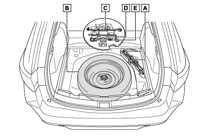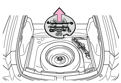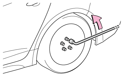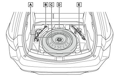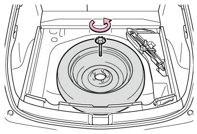 パンクしたタイヤを、備え付けの応急用タイヤと交換してください。(タイヤについての詳しい説明はタイヤについてを参照してください)