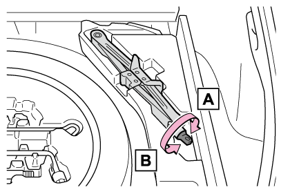 ジャッキを収納するときは、ジャッキを締めてトレイへ押し付けてください。