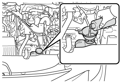ハイブリッドシステムが熱いときに急に冷たい冷却水を入れると、ハイブリッドシステムが損傷するおそれがあります。