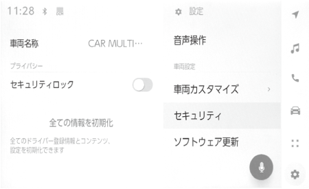 ]にタッチします。 - サブメニューの[セキュリティ]にタッチします。