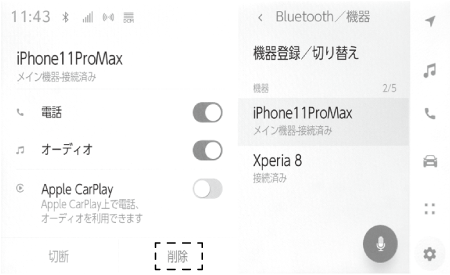 3. サブメニューから削除するBluetooth®機器にタッチします。