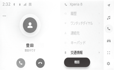 着信があると着信音が鳴り、着信画面もしくは着信通知が表示されます。音声操作の設定で、[通知表示中の発話受付]がON の場合、着信したときにエージェント(音声対話サービス)が起動します。(→音声操作の設定を変更する