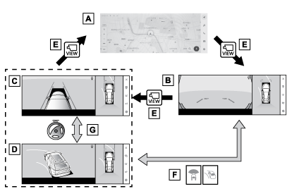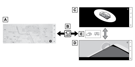 • 本文中で使用している画面のイラストは例であり、イラストと実際に映し出される映像では車両の映り込みなどが異なることがあります。