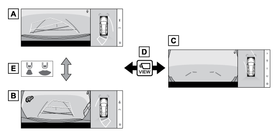 • パノラミックビューモニターは、車両周囲確認を補助する装置です。必ず周囲の安全を直接確認しながら運転してください。