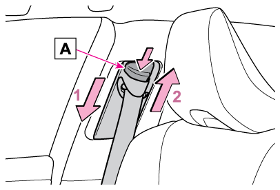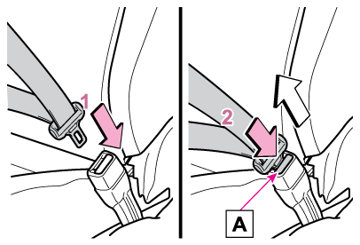 プレートがバックルに確実に挿し込まれているか、シートベルトがねじれていないかを確認してください。うまく挿し込めない場合はただちにトヨタ販売店に連絡してください。