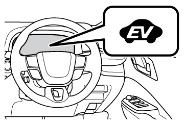 ガソリンエンジン停止中や、電気モーターのみで走行しているときに、EVインジケーターが点灯します。