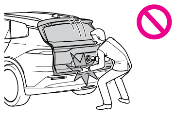バックドアイージークローザーの作動中は無理な力をかけないでください。無理な力をかけると、バックドアイージークローザーの故障の原因になります。