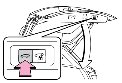 ただし電子キーを携帯してバックドアオープンスイッチを押し続けたときはバックドアが施錠されていてもパワーバックドアは作動します。(→バックドアのスイッチを使用して開閉する)