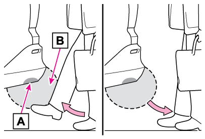 足をリヤバンパー運転席側の下部に近付けて離す動作をしたとき(手やひじ、ひざなどでも作動します)