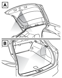 バックドアを開けたとき、バックドアランプとラゲージルームランプが点灯します。