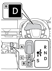 必ずハイブリッドシステムが始動状態であることを確認してください。ハイブリッドシステム始動状態以外で操作を行うと、Pポジションに切り替わるおそれがあります。