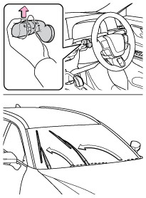 レバーを手前に引くとワイパーと連動してウォッシャーが作動します。(ワイパーが数回作動したあと、液だれ防止としてさらにもう1 回作動します。ただし、走行中は液だれ防止作動は行いません)