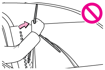 • ワイパーブレードのみを持ってワイパーを立てないでください。ブレードが変形するおそれがあります。