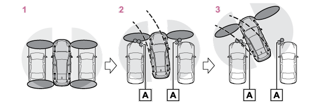 クリアランスソナーは、車両と壁などの静止物とのおおよその距離を超音波センサーによって検知して、マルチメディアディスプレイの距離表示とブザー音、音声案内で運転者にお知らせします。