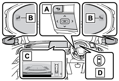 - メーター操作スイッチメーター操作スイッチを操作して、マルチインフォメーションディスプレイ上でRCTA機能のON/OFFを切りかえます。