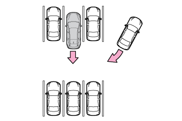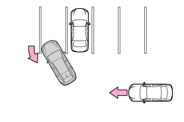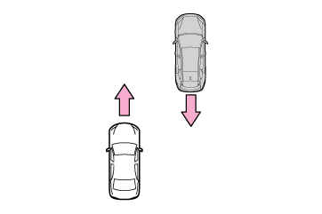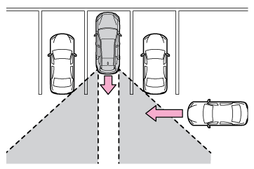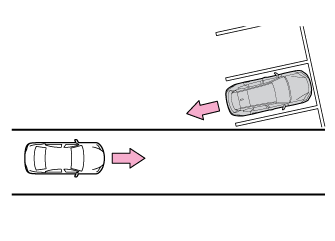 - マルチメディアディスプレイ自車の右後方または左後方から接近している車両を検知したときは、マルチメディアディスプレイに検知した側のRCTAアイコン(→RCTAアイコンの表示)が点灯します。イラスト