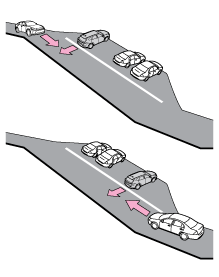 - ドアミラーインジケーター自車の右後方または左後方から接近している車両を検知したときは、両側のドアミラーインジケーター(→表示灯一覧)が点滅し、ブザーが鳴ります。