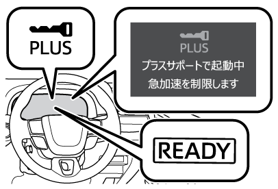 プラスサポートを使用するためには、プラスサポート用スマートキー(以下、サポキー)が必要です。プラスサポートおよびサポキーは販売店装着オプションです。
