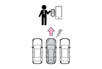 • リモート機能は、駐車や出庫の操作をスマートフォンによる遠隔操作でアシストするシステムです。リモート機能を使用するときは、運転者が電子キーとスマートフォンを保持した上で、車両周辺の安全確認を行ってください。