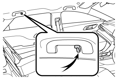 天井に取り付けられているアシストグリップは、走行中にシートに座っている状態で体を支えるときにお使いください。