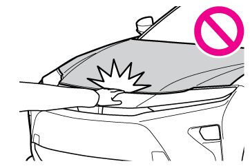 ボンネットを閉めるときは、体重をかけるなどして強く押さないでください。ボンネットがへこむおそれがあります。