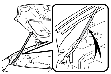 • 走行後のボンネットステーは高温になっています。熱くなったボンネットステーにさわるとやけどなどの重大な傷害を受けるおそれがあります。