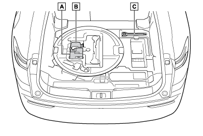 タイヤパンク応急修理キット装着車には、応急用タイヤ、ジャッキ、ジャッキハンドル、ホイールボルトレンチ、ホイールボルトソケット、ガイドピンが搭載されていません。