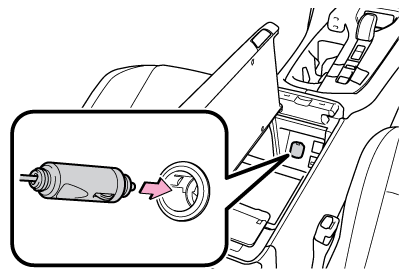 9. コンプレッサーの電源プラグをアクセサリーソケットに挿し込む