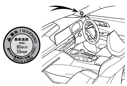 25. 急ブレーキ・急加速・急ハンドルを避け、走行距離が約100km 以内、80km/h 以下の速度で、トヨタ販売店まで慎重に運転する
