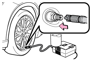 • パンク補修液ボトル1本でタイヤ1本を1 回応急修理できます。使用したパンク補修液の交換は、トヨタ販売店にご相談ください。