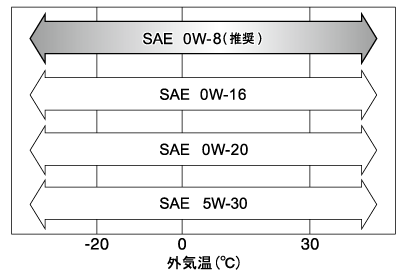 JASO GLV-1 SAE 0W-8 が入手困難な場合は、以下のオイルもご使用いただけます。