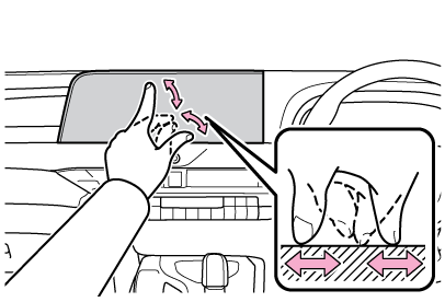画面にふれた2本の指を広げたり近づけたりします。地図の拡大や縮小を行うことができます。
