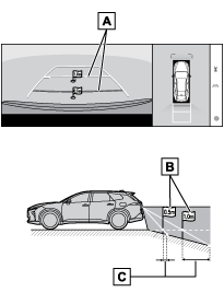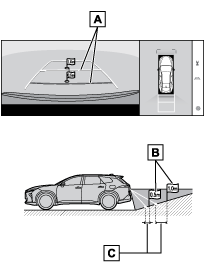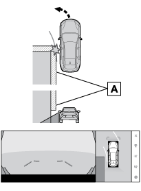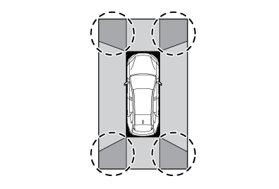 車両付近には死角があり、表示されない領域があります。画面では車両の周辺に何も表示されていなくても、実際には障害物が進路上にあるため、接触することがあります。必ず周囲の安全を直接確認してください。