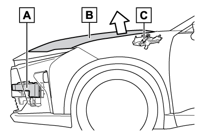 • ポップアップフードの部品や配線などを取りはずしたり修理しないでください。誤って作動したり、正常に作動しなくなるおそれがあります。修理や交換作業が必要なときは、トヨタ販売店にご相談ください。
