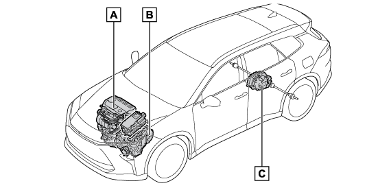 アクセルペダルを大きく踏み込んだときは、ガソリンエンジンと電気モーターの両方の動力により力強く加速します。