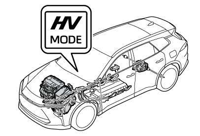 HVモード時は、ガソリンエンジンと電気モーターを併用して走行します。(→HV モード時)